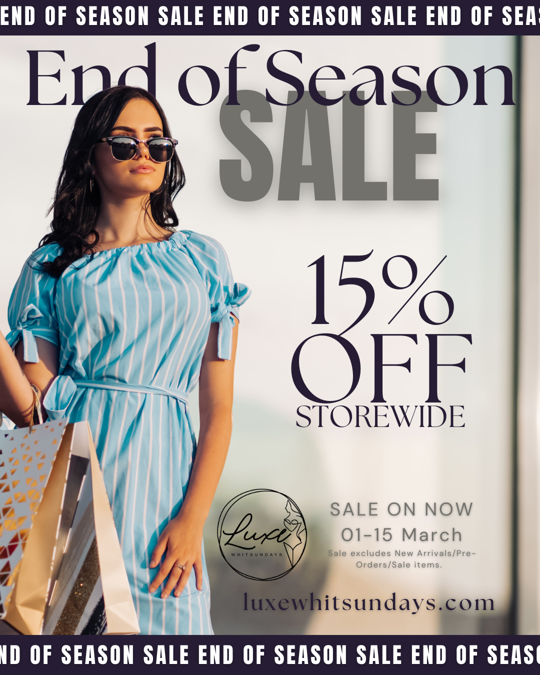 15% off store-wide for our End of Season Sale, starting Sunday, March 1st, and ending March 15th.