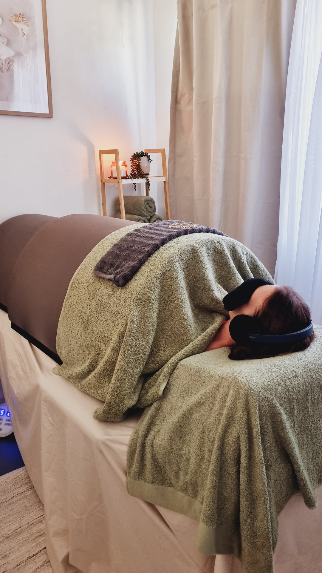 A Full Sensory Experience combining Aromatherapy, Sound Healing Therapy with our sound cancelling headsets and Light-block* allowing focus on breath, resulting in a deep relaxation.