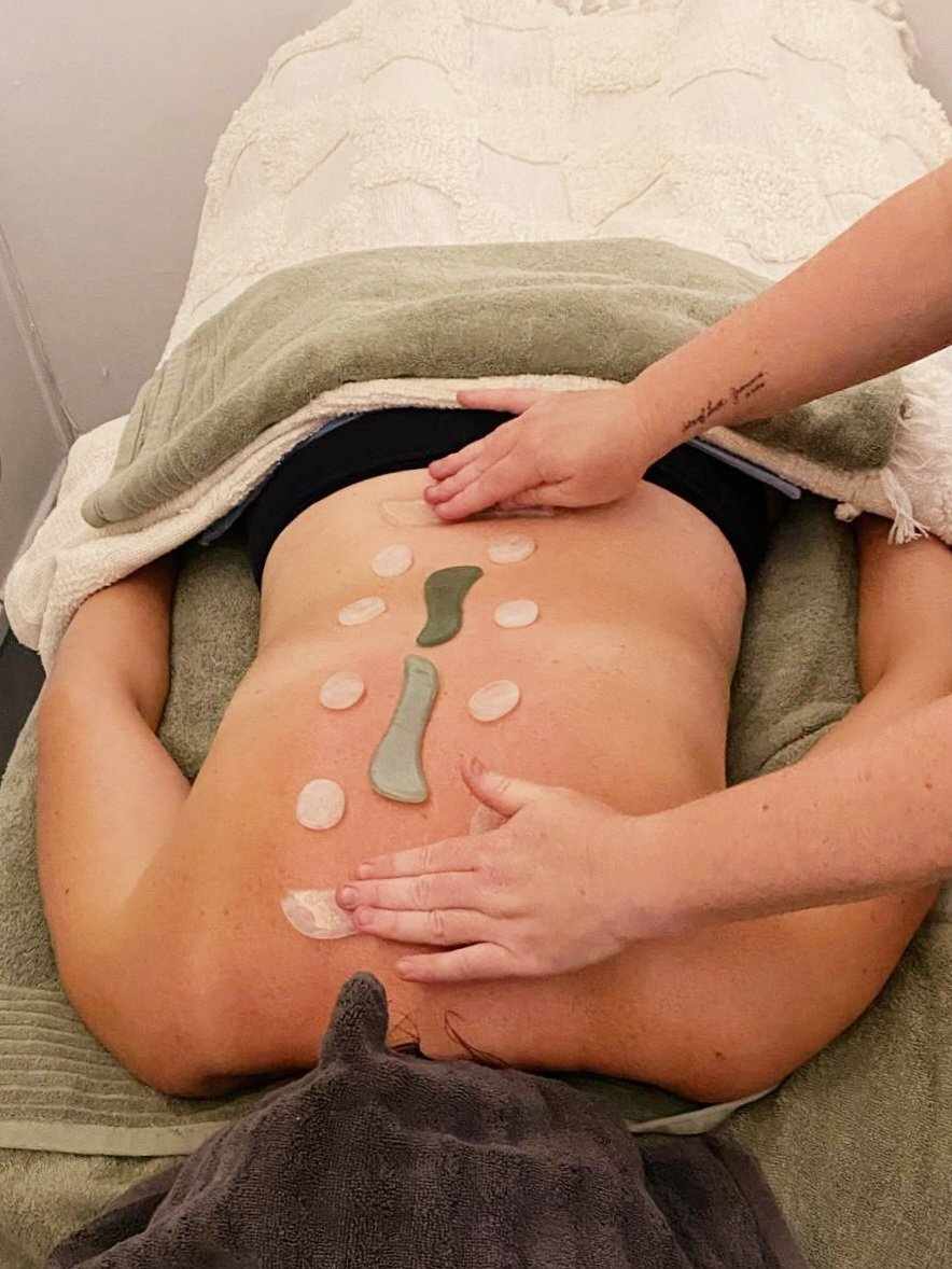 Remedial massage with crystal stone thermal therapy: