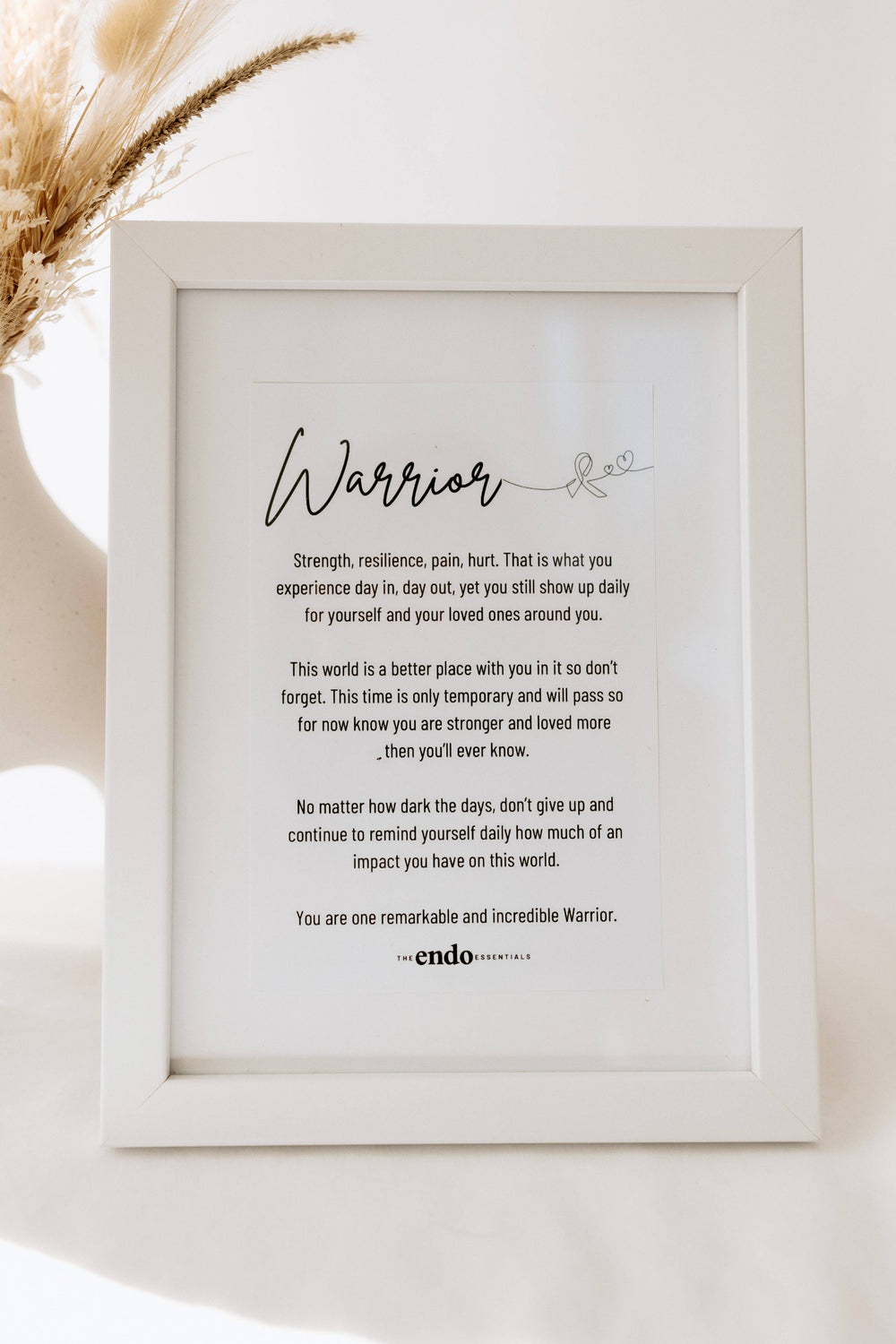 Empower and uplift yourself or a loved one with our Inspiring Quote. This beautifully designed 4x6 inch (10x15cm) photographed quote is a heartfelt reminder of strength, resilience, and hope, perfect for anyone facing the challenges of Endometriosis Warriors and all chronic illness fighters. This elegant piece fits seamlessly into any decor, adding both beauty and inspiration to any space.